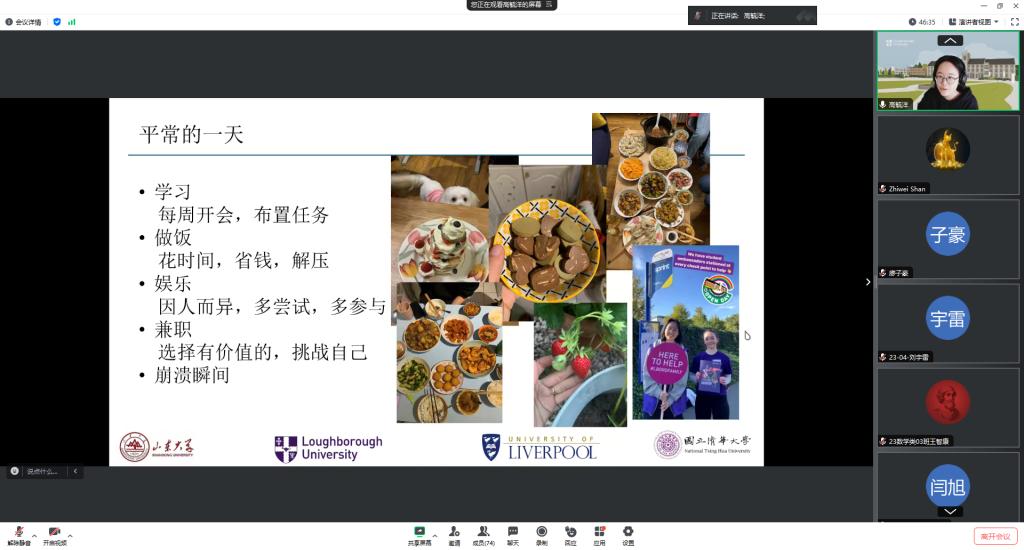 本站讯 4月7日晚,pg电子官方网站通过线上腾讯会议举办第十一期“天南地北数学人”活动,主题聚焦“数学人的留学生活及后续发展”。统计学专业2019届校友单志伟、高毓洋,2022届校友张笑应邀分享海外学习生活,并分别介绍继续深造和回国就业的相关经验。辅导员赵宇轩、崔巍与70余名学生共同参加本次活动。