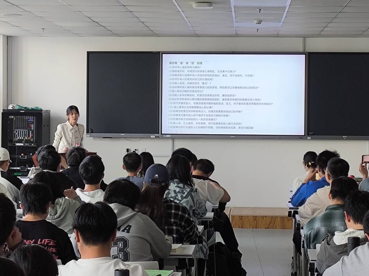 本站讯 为进一步推进学院心理健康教育工作的高效开展,提升心理委员和宿舍心理信息员的综合素养,4月25日下午,pg电子官方网站于北衡楼1420组织开展“走进心灵”主题讲座暨第七期“学生干部成长营”活动。此次讲座由“数语心坊”心理辅导站指导老师王祎璠主讲,学院2022级、2023级心理委员和宿舍心理信息员共计80余人参与。