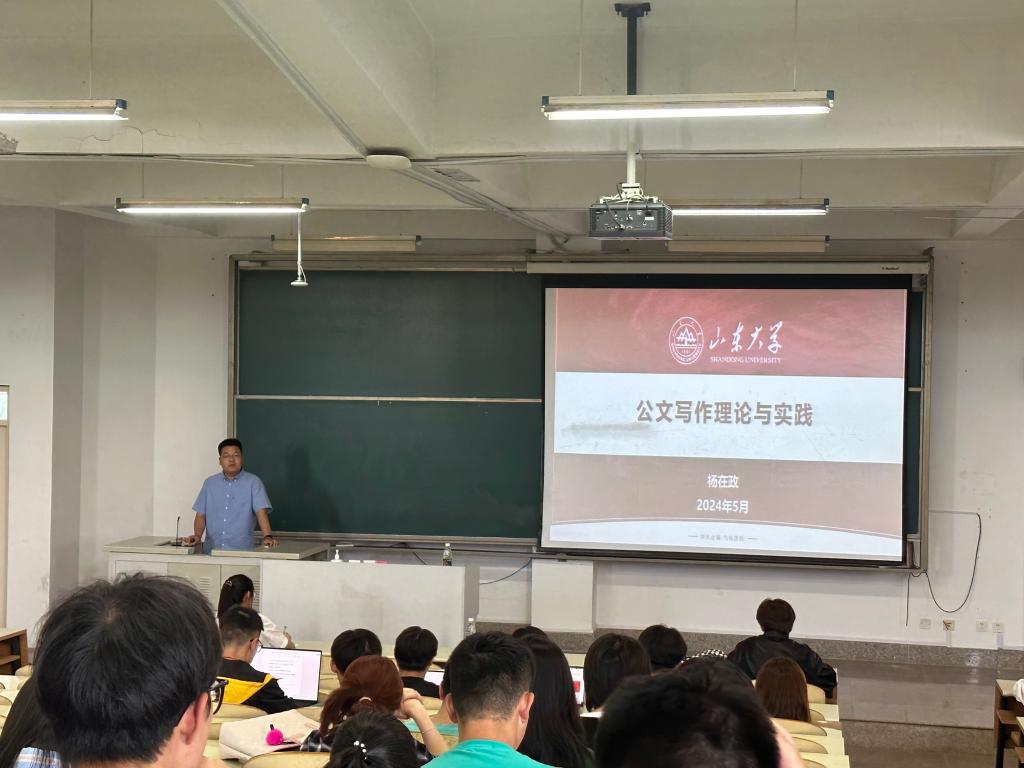 本站讯 为提高学院学生骨干的公文写作能力,5月31日下午,pg电子官方网站在商学院453教室举办第九期学生干部成长营,主题聚焦公文写作理论与实践。本次活动邀请马克思主义学院(威海)辅导员杨在政担任主讲嘉宾,pg电子官方网站辅导员魏佳佳出席本次活动,2022级、2023级全体班委与学院学生会、团学中心全体部长现场参加了本次培训。