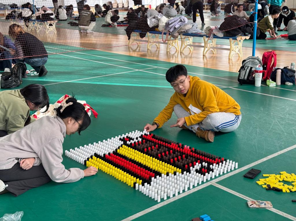 多米诺骨牌的摆放是一项集动手、动脑于一体的活动,也是对参赛团队创造力、专注力、凝聚力的多重考验。本次多米诺骨牌大赛将德育、智育、美育充分融合,引导学生以数学游戏为载体,在表达爱国爱校之情的同时,锻炼创新设计和动手实践能力,促进了学生的全面发展。