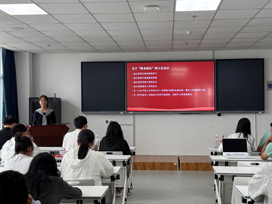 比赛中,12位选手依次登台,围绕《习近平的七年知青岁月》与《终身成长》两本书籍,畅谈了各自的感悟与思考。他们以书中内容为锚点,将习近平总书记青年时期的奋斗历程与坚定信仰,同自身的学习实践与成长困惑紧密联系,既从书中汲取精神力量,更以“成长型思维”观照现实,针对学业发展、未来规划等议题提出见解,展现了学院青年学子勤学善思、积极向上的精神风貌。演讲环节结束后,40名观众现场投票选出“最佳人气奖”,由2024级刘心睿同学获得。王祎璠在总结点评中充分肯定了参赛同学对两本书籍的深入理解与价值思考,并鼓励全体同学以阅读涵养心性、以思维启迪未来,让书籍真正成为个人成长的阶梯。