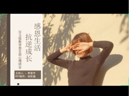 本站讯 4月18日上午8:30分,2019级数学四班于线上的腾讯会议召开本次心理班会,本次班会的主题为“感恩生活,抗逆成长”,由心理委员徐跃鑫负责PPT制作及班会记录,心理委员李雯芊进行心理班会的主持,班会结束后由辅导员王祎璠进行总结。