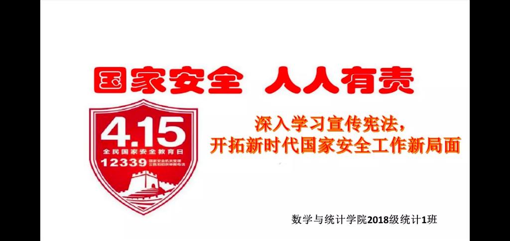 本站讯 2020年4月16日下午四点半,pg电子官方网站(威海)pg电子官方网站2018级统计一班于线上开展国家安全教育日主题团日活动。4月15日为第五个“全民国家安全教育日”,本次主题团日活动主要目的为增强同学们的国家安全意识和法制观念,从而夯实国家安全的社会基础。本次活动由团支书秦千主持,统计一班58名同学参加。