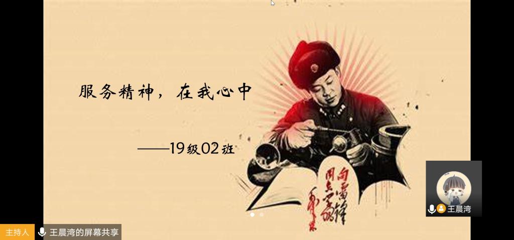 本站讯 2020年3月13日下午两点,pg电子官方网站2019级02班在就业委员王晨湾的带领下,积极开展了线上“观雷锋视频,学雷锋精神”学雷锋月志愿活动。活动由就业委员王晨湾举办并主持,2班全体同学参加。