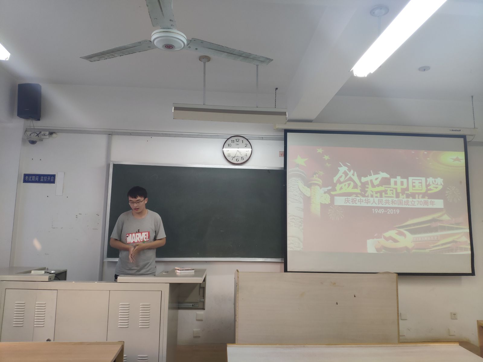本站讯 2019年9月27日下午五点, 2018级统计一班团支部于图东教学楼216举行“盛世中国梦”庆祝新中国成立七十周年主题团日活动。本次主题团日活动由班长祁龙康主持,杨丰凯老师出席本次活动。