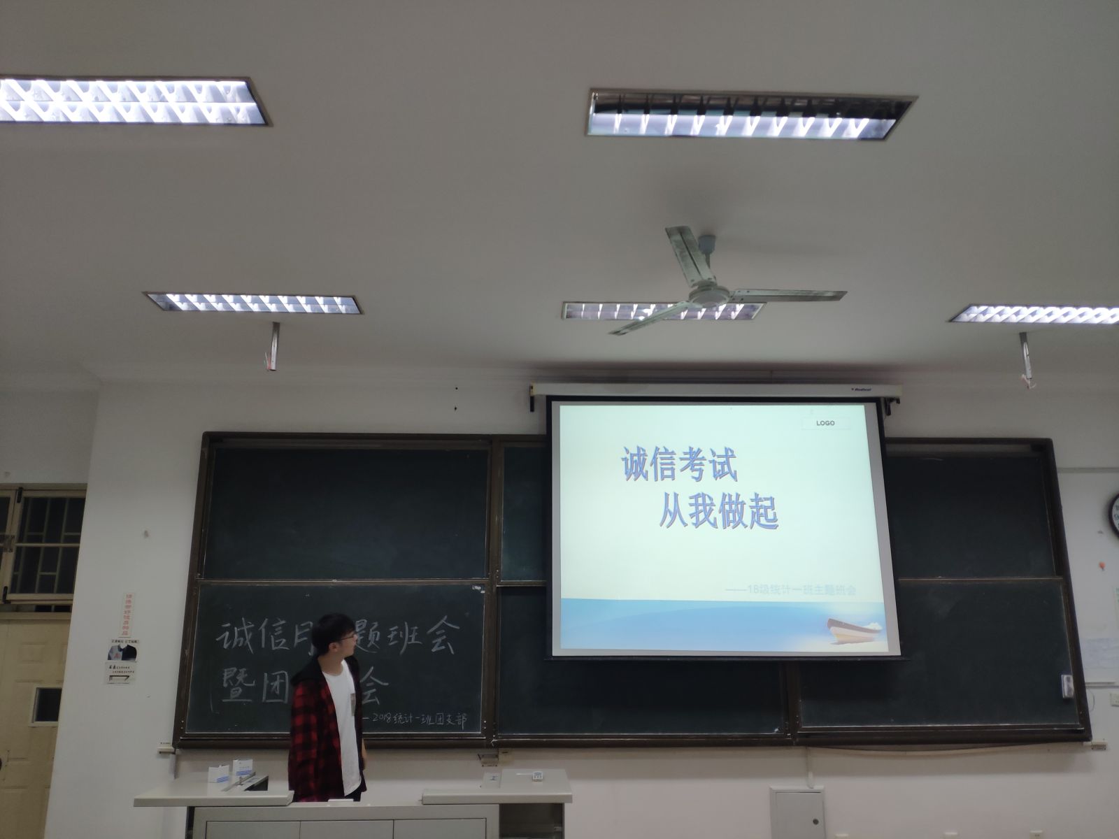 本站讯 2019年6月9日晚七点三十分,2018级统计一班于图东教学楼322室举办“诚信考试,从我做起”诚信月主题班会暨团员大会。会议由班长祁隆康主持,旨在呼吁同学在接下来的期末考试中遵守纪律,拒绝作弊,保持诚信,班级全体成员参加。
