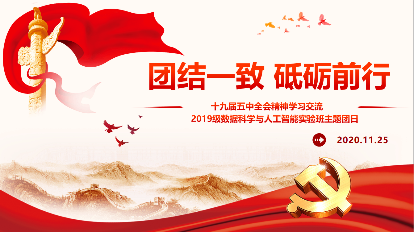 本站讯 2020年11月24日,2019级数据科学与人工智能实验班举办了“团结一致 砥砺前行”主题团日,进行了对党的十九届五中全会精神的学习交流。团支书朱雨晨主持了本次主题团日。