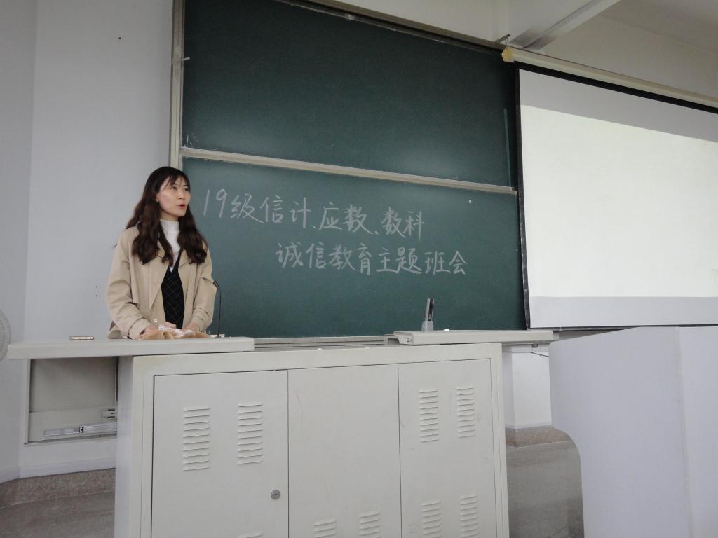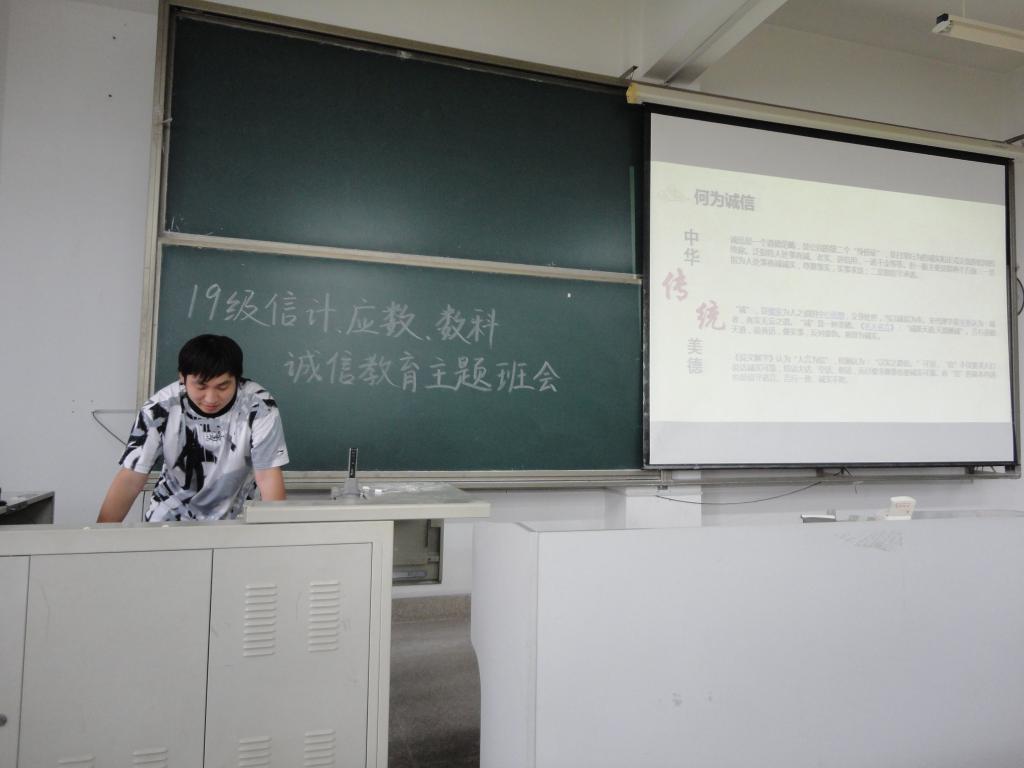 本站讯 2021年6月3日下午16:40,pg电子官方网站2019级信息与计算科学班、数学与应用数学班、数据科学与人工智能实验班共同在商学院553教室举办诚信教育主题团课。本次活动由信息与计算科学班班长杨智捷主持,辅导员王祎璠参加活动。