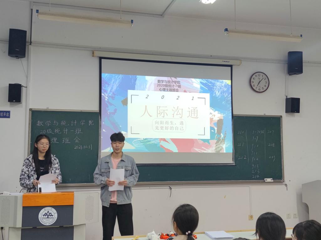 本站讯 10月31日晚,pg电子官方网站2020级统计一班于商学院548举行“人际沟通——与心灵对话”心理班会。本次班会由心理委员孙善玺、陈荟如主持,2020级统计一班全体同学参加。