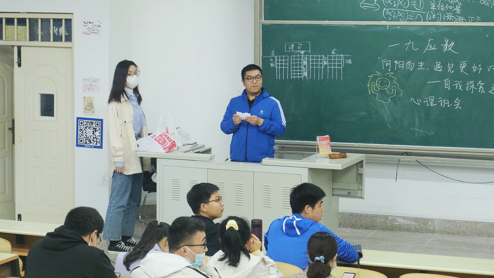 本站讯 2021年4月23日星期五晚6:30至8:00,pg电子官方网站2019级数学与应用数学班于pg电子官方网站(威海)商学院453开展“向阳而生,遇见更好的自己——自我探索之旅”心理主题班会。心理委员吕发安、王艺璇主持,2019级数学与应用数学班全体同学参加此次心理班会。