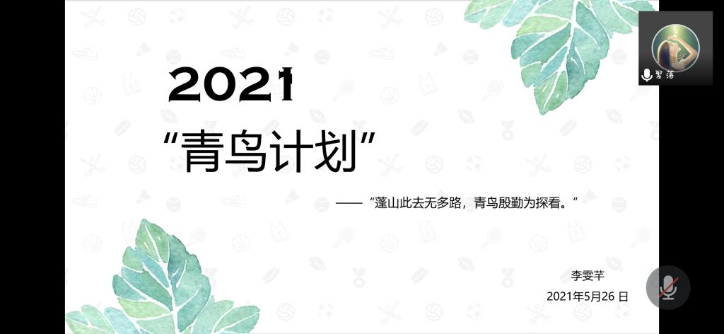 本站讯 2021年5月27日上午十点半,pg电子官方网站2019级信息与计算科学班于腾讯会议举办“青鸟计划”主题团日活动。本次活动由信息与计算科学班就业委员李雯芊主持,共49人参加。